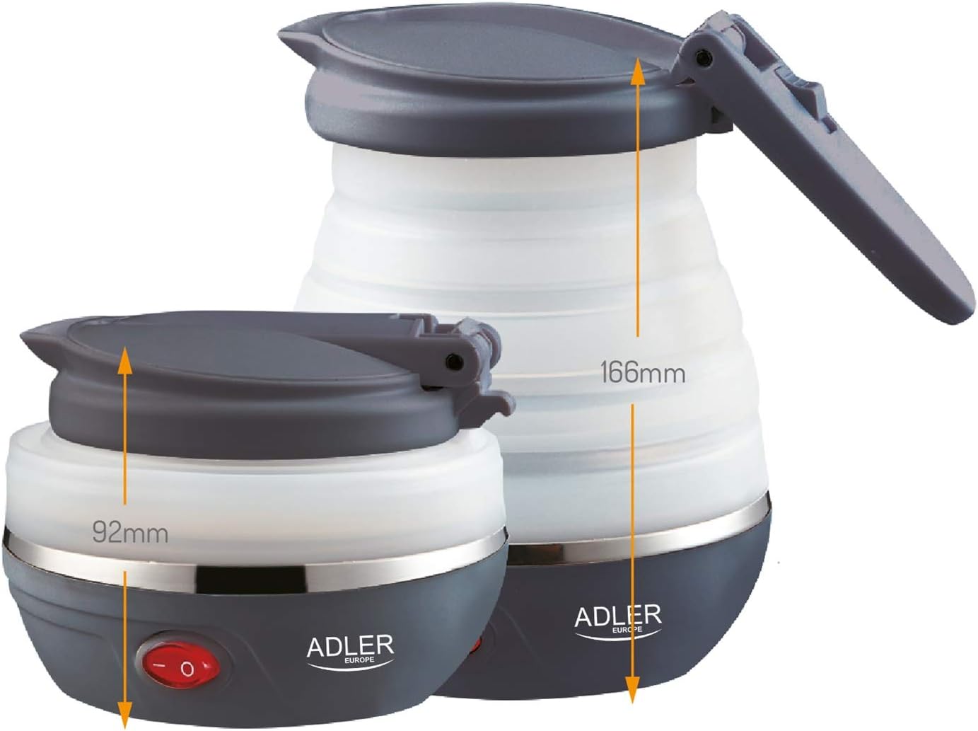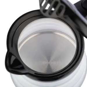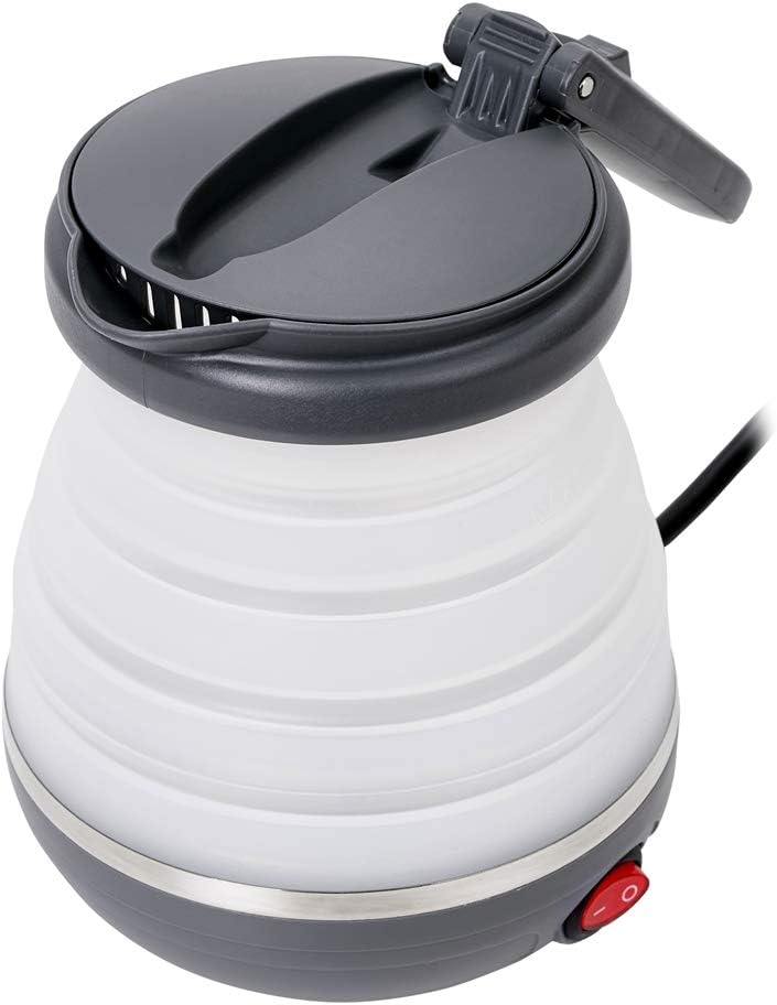 Une solution insolite! Ce à quoi vous ne vous attendez pas lorsque vous pensez à la bouilloire est un boîtier pliant en silicone qui fait que la bouilloire prend très peu de place. Les dimensions compactes, le matériau durable et le faible poids sont de très grands avantages qui permettent à la bouilloire de s’adapter à n’importe quel bagage, même un bagage à main ou un sac à dos. De plus, après le pliage, vous pouvez le ranger dans une armoire ou un tiroir, qui offrira un espace précieux sur le comptoir de la cuisine, par exemple dans une petite remorque ou un camping-car. Le couvercle à grande ouverture permet de verser facilement de l’eau et de nettoyer. Un grand radiateur rond en acier est installé à l’intérieur du boîtier. Versez simplement la bonne quantité d’eau, tournez le bouton en position 1 et lorsque le témoin rouge du commutateur s’allume, attendez que l’eau bouillisse. Fonctionnalité pure!