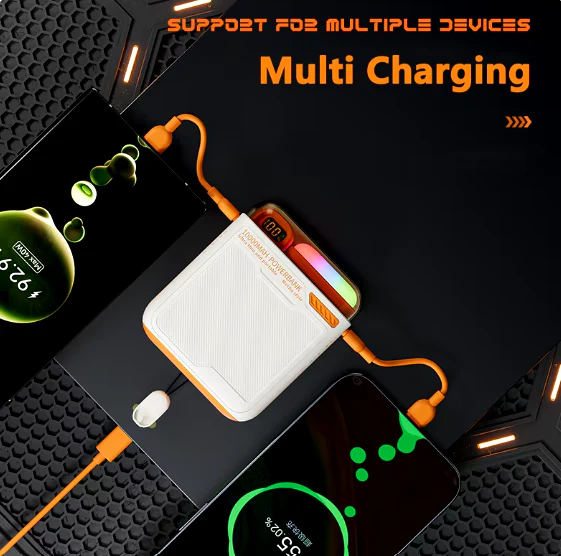 Profitez d’une autonomie prolongée grâce à notre banque d’alimentation magnétique sans fil de 10 000 mAh. Que vous soyez en déplacement, en réunion ou simplement à la maison, gardez vos appareils chargés rapidement grâce à la technologie de charge rapide, sans jamais vous soucier des câbles encombrants.